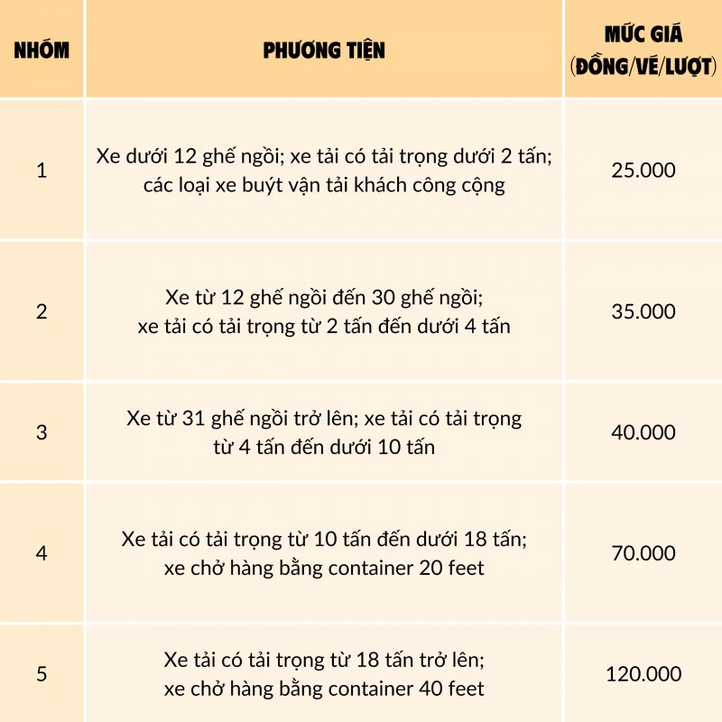 Theo đó, mức giá dịch vụ sử dụng đường bộ (đã bao gồm thuế suất GTGT 10%), áp dụng từ ngày 1/7/2024 (Biểu số 01), cụ thể như sau: