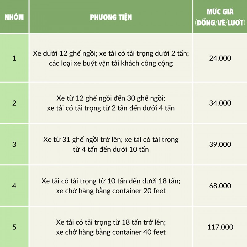 Mức giá dịch vụ sử dụng đường bộ (đã bao gồm thuế suất GTGT 8%), áp dụng từ ngày bắt đầu thực hiện thu phí đến hết ngày 30/6/2024 (Biểu số 02), cụ thể như sau:
