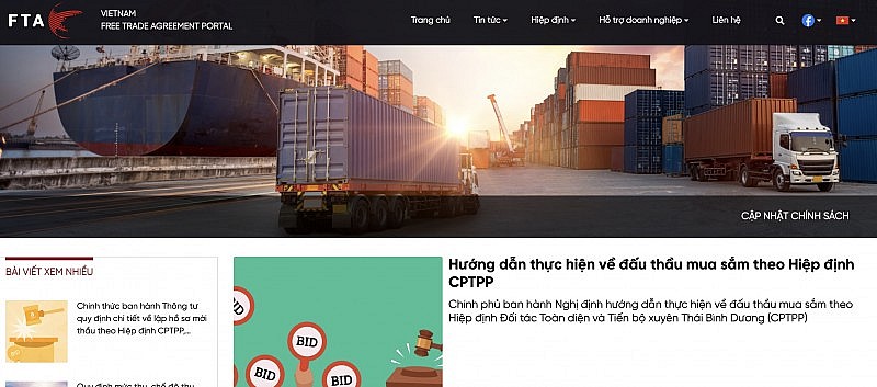 | Cổng thông tin điện tử cấp Chính phủ về tất cả các FTA mà Việt Nam đang tham gia. Ảnh: HQ |