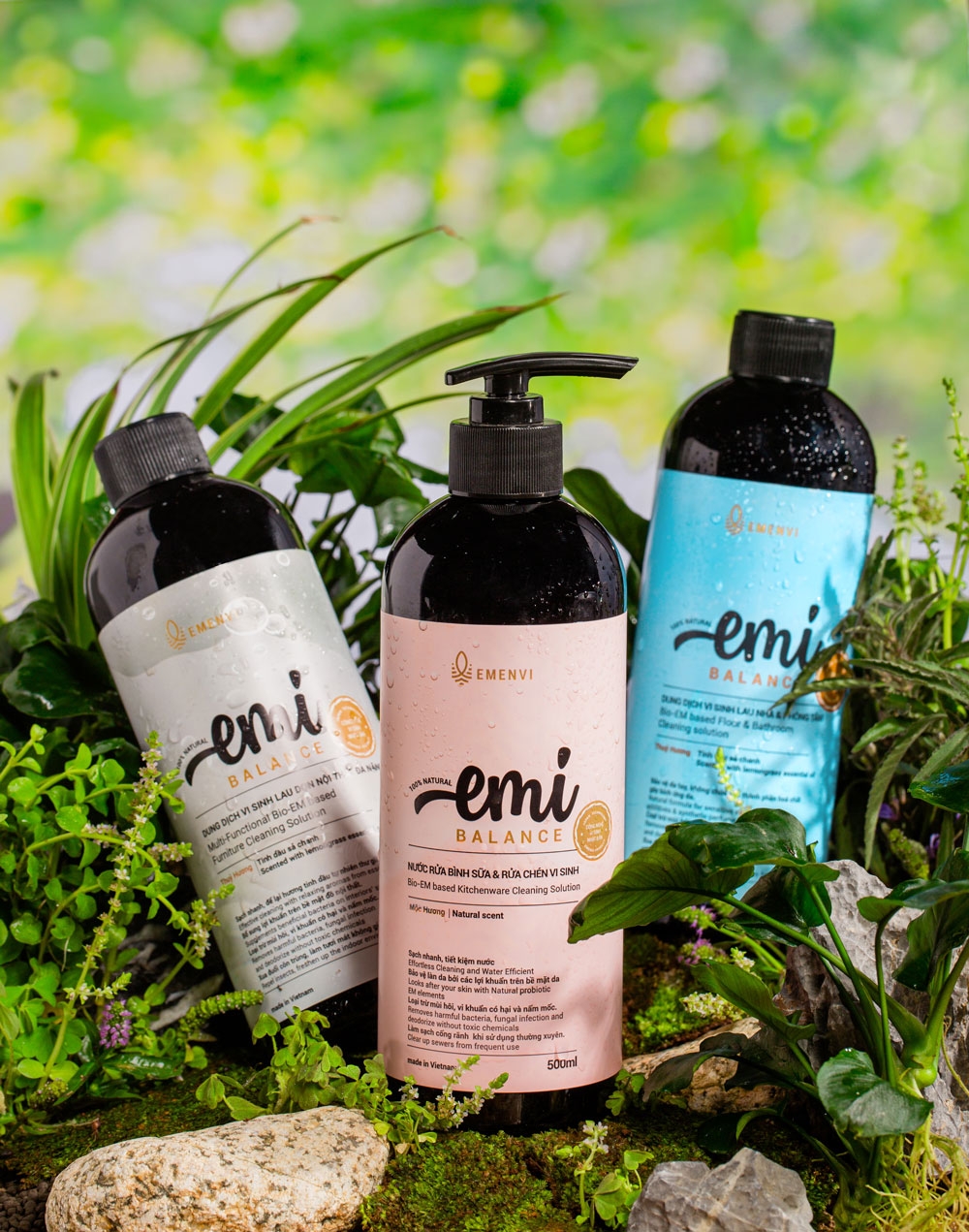 Với công thức độc quyền hoàn toàn tự nhiên từ hỗn hợp chế phẩm vi sinh, phối hợp với tinh dầu tự nhiên, các sản phẩm homecare thương hiệu EMi Balance đặc biệt an toàn cho làn da và đường tiêu hóa của trẻ nhỏ, những người có cơ địa dị ứng hóa chất nặng. Thông qua sự hoạt động của các lợi khuẩn giúp cân bằng độ ẩm trên bề mặt da và triệt khuẩn bề mặt đồ nội thất, các dòng sản phẩm EMi Balance giúp khử nấm mốc, khử sạch mùi hôi, tanh, ẩm mốc, xua đuổi côn trùng và thông thoáng đường ống thoát nước.