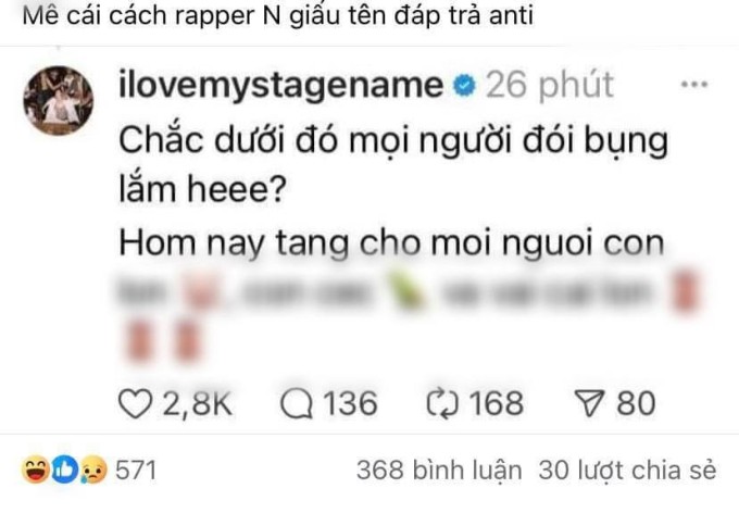 | Một dòng trạng thái tục tĩu được cho là của nam rapper Negav. Ảnh chụp màn hình |