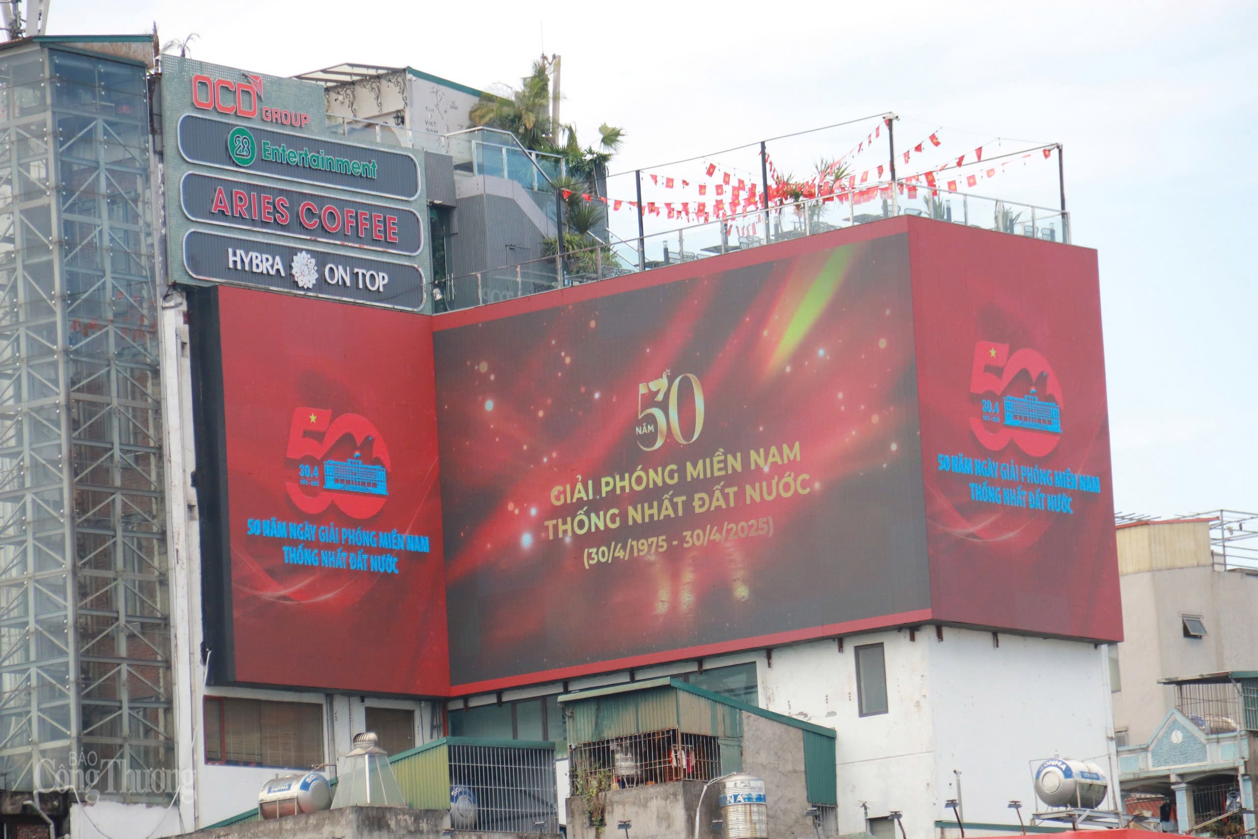| Trên nhiều tuyến phố, khẩu hiệu kỷ niệm ngày 30/4 tạo không khí trang nghiêm và tự hào |