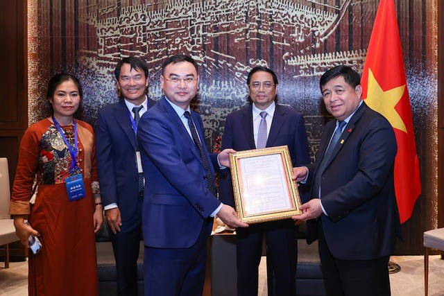 | Thủ tướng Chính phủ Phạm Minh Chính chứng kiến trao giấy chứng nhận đăng ký đầu tư cho Tập đoàn Runergy đầu tư tại tỉnh Nghệ An - Ảnh: VGP/Nhật Bắc |