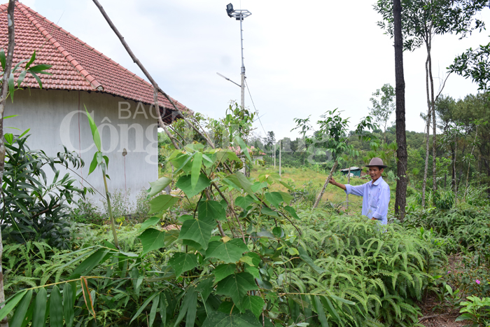 | Ông Nguyễn Viết Cũ ở xã Thủy Bằng chỉ chỗ đối tượng xấu lấn chiếm đất trái phép của gia đình ông |