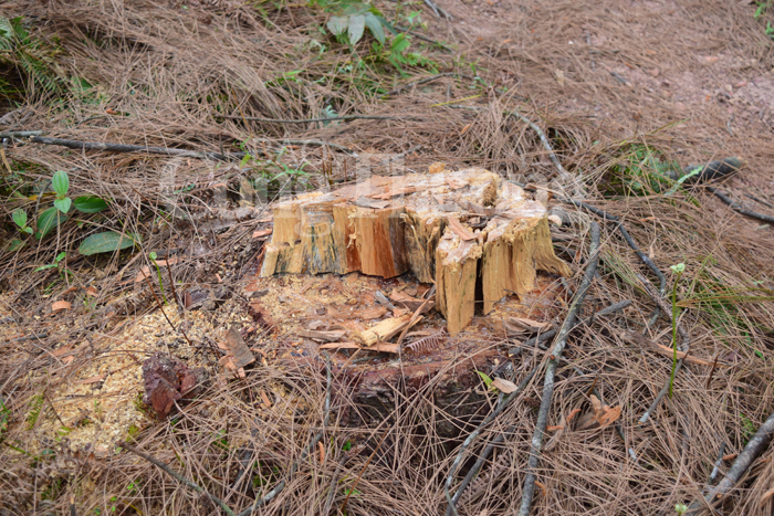 Để chiếm đất, ban đêm bọn chúng tìm cách cưa đổ mang tẩu tán. Những gốc cây thông sót lại, chúng dùng xe múc đào bật gốc, hòng phi tang chứng cứ…