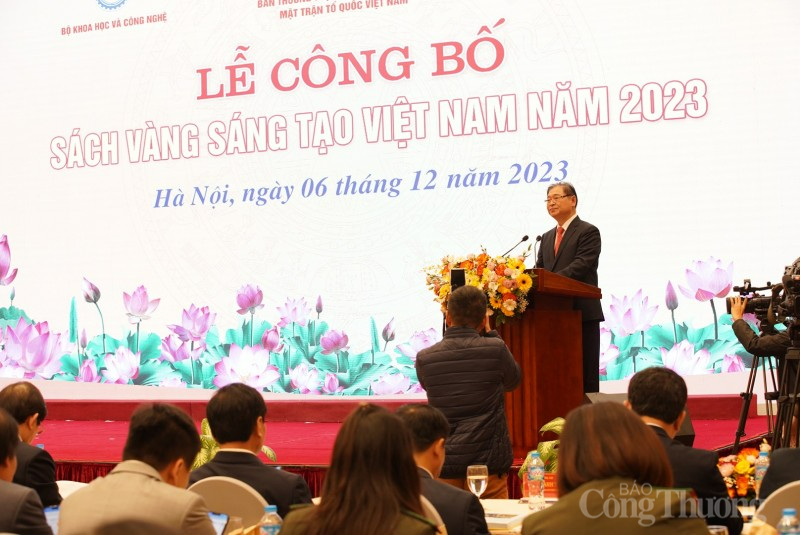 Phát biểu tại buổi lễ, Bí thư Trung ương Đảng, Chủ tịch Ủy ban Trung ương Mặt trận Tổ quốc Việt Nam Đỗ Văn Chiến nhiệt liệt chúc mừng và biểu dương sáng kiến của Mặt trận Tổ quốc Việt Nam, Bộ Khoa học và Công nghệ; Liên hiệp các Hội Khoa học và Kỹ thuật Việt Nam đã hoàn thành việc tuyển chọn, biên tập cuốn Sách vàng Sáng tạo Việt Nam năm 2023 một cách bài bản, khoa học, chặt chẽ, bảo đảm tính công khai, minh bạch, khách quan để lựa chọn 79 công trình khoa học tiêu biểu từ các tỉnh thành trong cả nước.
