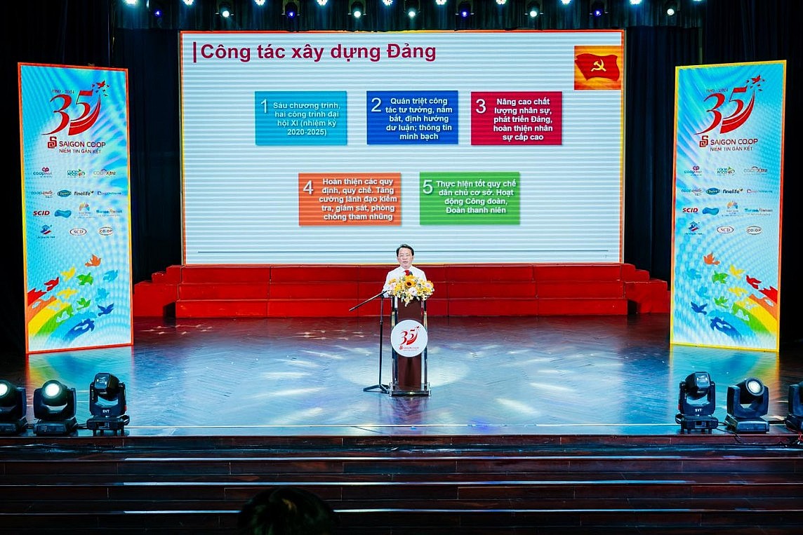 Cụ thể, Ban cán sự Đảng bộ Saigon Co.op đã quán triệt công tác tư tưởng, nắm bắt, định hướng dư luận, thông tin minh bạch; nâng cao chất lượng nhân sự, phát triển Đảng, hoàn thiện nhân sự cấp cao. Đặc biệt là thực hiện tốt quy chế dân chủ cơ sở cũng như phát huy vai trò hoạt động của Công đoàn và Đoàn thanh niên trong Liên hiệp. Từ đó đưa ra những đường hướng, quyết sách phù hợp, giúp Saigon Co.op kiểm soát khá tốt chi phí, đảm báo hiệu quả kinh doanh trong bối cảnh vẫn còn nhiều khó khăn.