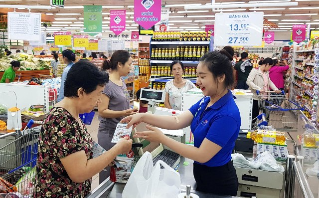 Hình thức áp dụng là khi khách hàng mua sắm với hóa đơn cứ mỗi 200.000 đồng sẽ được tăng 1 tem đổi quà. Tùy theo số lượng tem đổi quà tích lũy được, khách hàng có thể trả thêm một ít tiền mặt để đổi lấy sản phẩm quà tặng tương ứng. Trong đó, sản phẩm cần tích tem ít nhất là kéo nhà bếp trị giá gần 400.000 đồng thì chỉ cần đổi bằng 25 tem kèm 15.000 đồng tiền mặt; Sản phẩm dao chặt xương, bản lớn đúc liền cán, trị giá gần 1.200.000 đồng có thể đổi bằng 70 tem kèm 80.000 đồng tiền mặt. Khách hàng có thể nhận thêm tem thưởng khi mua một số sản phẩm của các nhãn hàng tham gia chương trình.