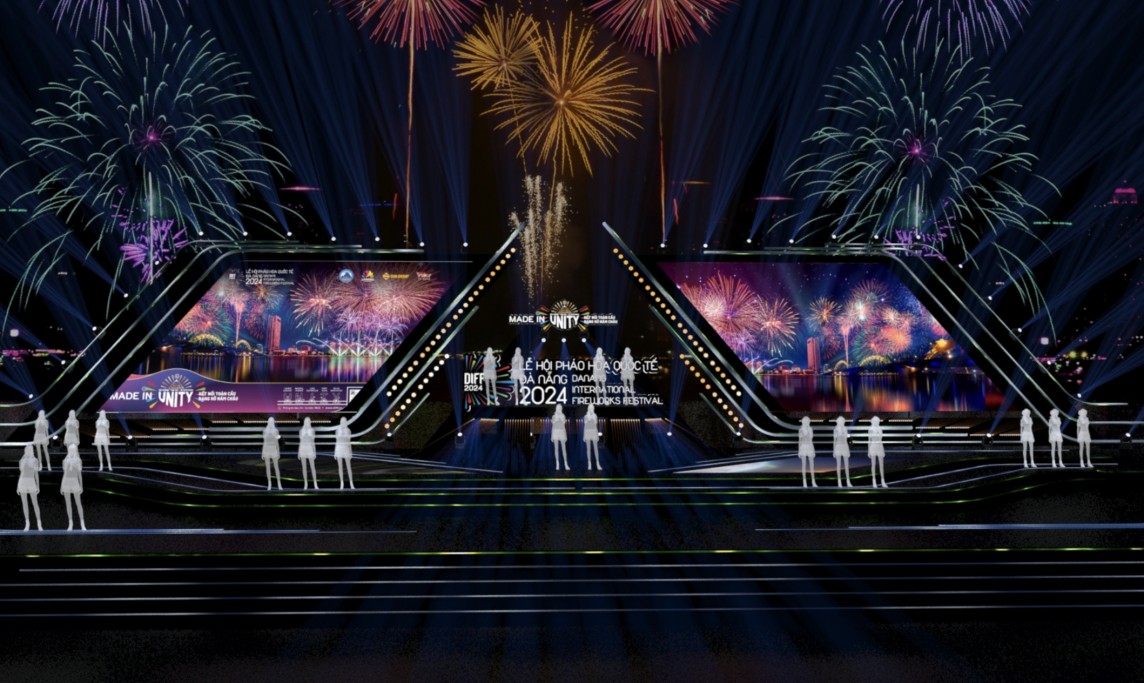 Chia sẻ về những điểm đặc biệt của sân khấu DIFF 2024 so với những năm trước, Ban tổ chức cho biết điểm nổi bật nhất trong sân khấu DIFF 2024 là hệ bàn nâng lớn chính giữa sân khấu kết hợp với hệ thống ánh sáng tạo ra không gian trình diễn độc đáo và đa chiều được sử dụng trong đêm chung kết. Hệ thống ánh sáng sân khấu năm nay cũng được nâng cấp với công nghệ dàn đèn nâng hiện đại, có thể nâng hạ linh hoạt nhằm mang đến những góc nhìn đẹp nhất ra toàn cảnh khu vực bắn pháo hoa.
