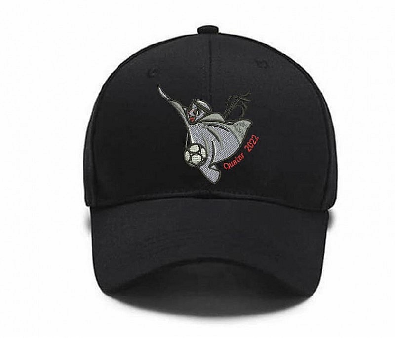 Mũ được gắn thêm logo hình linh vật World Cup 2022 |
