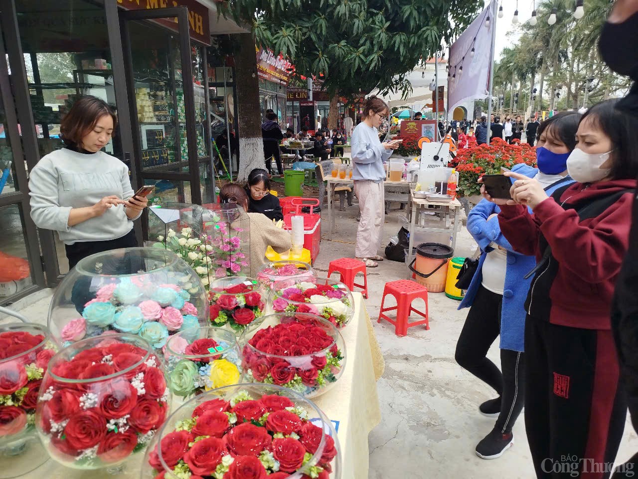 | Du khách đến ngắm nghía sản phẩm "hoa bất tử" tại khu trưng bày tại đền Hai Bà Trưng (huyện Mê Linh, thành phố Hà Nội) |