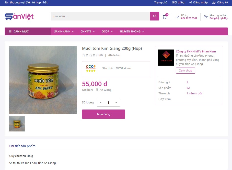 Sàn Việt - Sàn thương mại điện tử hợp nhất (Sanviet.vn) do Cục Thương mại điện tử và Kinh tế số - Bộ Công Thương xây dựng và quản lý vận hành không chỉ là nơi "kết duyên" cho muối tôm Kim Giang với người tiêu dùng mà còn là "bệ phóng" cho nhiều đặc sản Việt Nam khác.