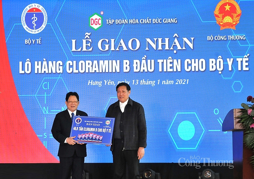 “Đáng chú ý, sản phẩm Cloramin B đặc biệt có ý nghĩa trong giai đoạn hiện nay. Ngay lô đầu tiên xuất xưởng, Tập đoàn Hoá chất Đức Giang đã tặng cho Bộ Y tế 5 tấn Cloramin B, đáp ứng nhu cầu khử trùng cấp bách cho 5 tỉnh miền Trung trong mùa bão lụt vừa qua, đóng góp một phần nhỏ bé của tập đoàn trong công cuộc phòng chống Covid-19 của Quốc gia” - ông Đào Hữu Huyền bày tỏ.