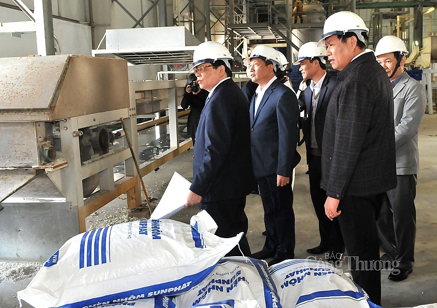 | Thứ trưởng Bộ Công Thương và Thứ trưởng Bộ Y tế cùng lãnh đạo các đơn vị thăm dây chuyền sản xuất Cloramin B |