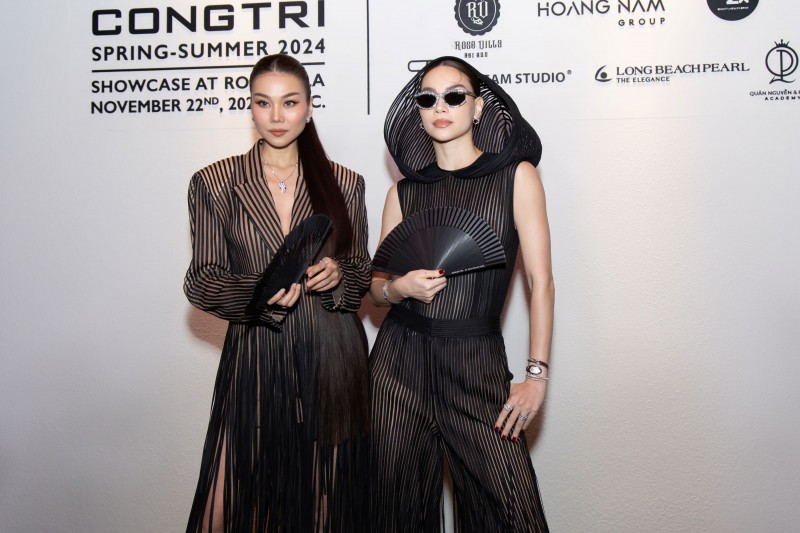 Biểu tượng thời trang hàng đầu V-biz: Hà Hồ - Thanh Hằng diện đồ đôi đến chúc mừng NTK Công Trí. Cả hai diện trang phục đầy cá tính, khoe vóc dáng chuẩn siêu mẫu và thần thái “đỉnh của chóp” trên thảm đỏ show diễn CONG TRI  |