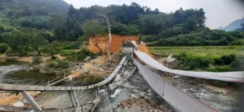 | Cầu Lũng Cáng bất ngờ bị đổ sập trong quá trình thi công |