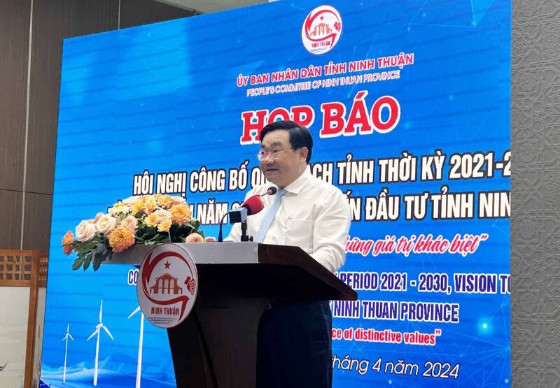 Tại buổi họp báo diễn ra ngày 19/4, Phó Chủ tịch UBND tỉnh Ninh Thuận, ông Trịnh Minh Hoàng cho biết, Hội nghị công bố Quy hoạch tỉnh Ninh Thuận thời kỳ 2021 - 2030, tầm nhìn đến năm 2050 và xúc tiến đầu tư tỉnh Ninh Thuận với chủ đề “Ninh Thuận - Miền đất hội tụ những giá trị khác biệt” sẽ diễn ra vào ngày 28/4/2024 tại TP. Phan Rang - Tháp Chàm, tỉnh Ninh Thuận.