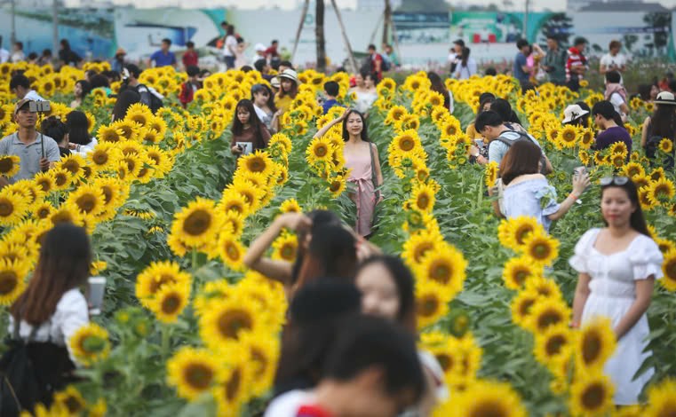 | Lễ hội hoa hướng dương đặc trưng tại Vạn Phúc City hàng năm thu hút đông đảo khách tham quan |