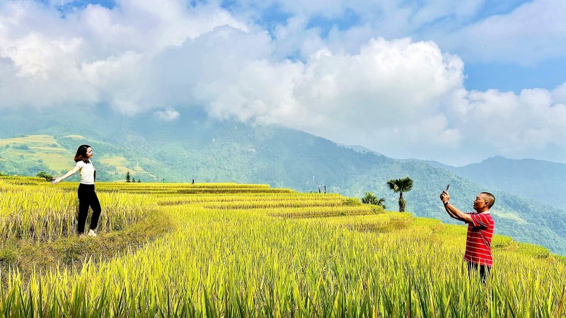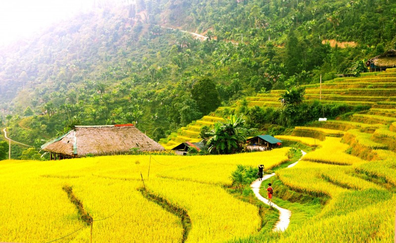 | Vào tháng 10 từng ruộng bậc thang lúa chín vàng óng ở Xà Phìn đã tạo sức hấp dẫn đặc biệt với du khách. Ảnh: Linh Tâm |