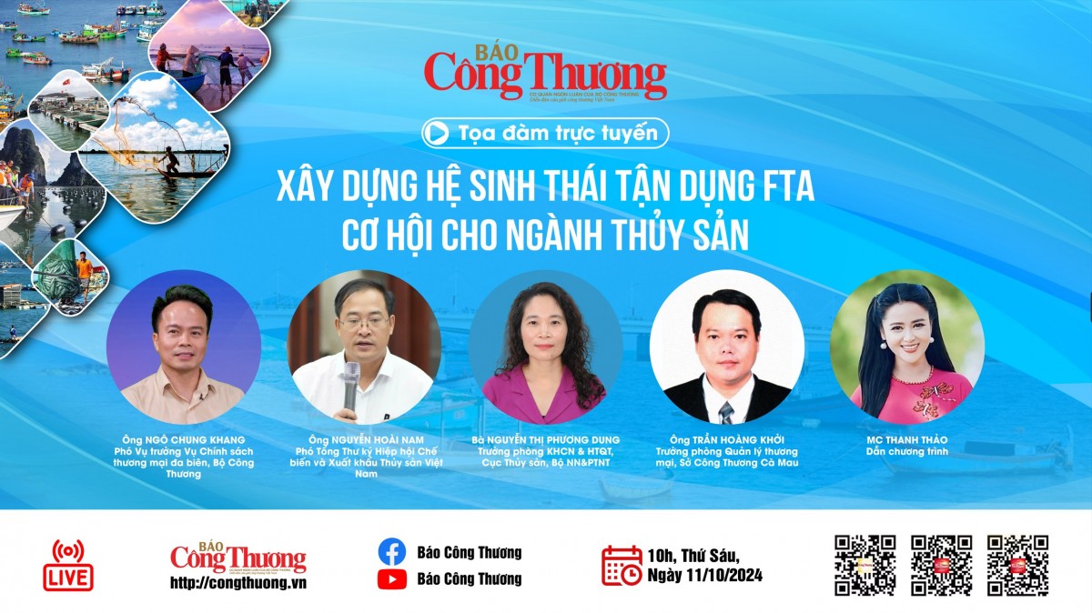 Từ thực tế trên, Báo Công Thương tổ chức Tọa đàm theo hình thức trực tiếp và trực tuyến với chủ đề “Xây dựng hệ sinh thái tận dụng FTA - Cơ hội cho ngành thủy sản" nhằm tìm ra giải pháp tốt nhất để giúp ngành thủy sản tận dụng tốt hơn ưu đãi từ các FTA cũng như hiện thực hóa các giải pháp để ngành thủy sản Việt Nam xây dựng tốt hơn hệ sinh thái, đẩy mạnh xuất khẩu.