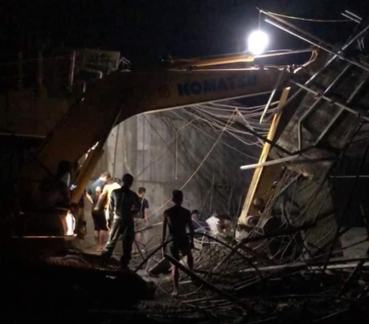| Khối bê tông đổ sập khiến 1 nam công nhân tử vong. (Ảnh: Xuân Bắc) |