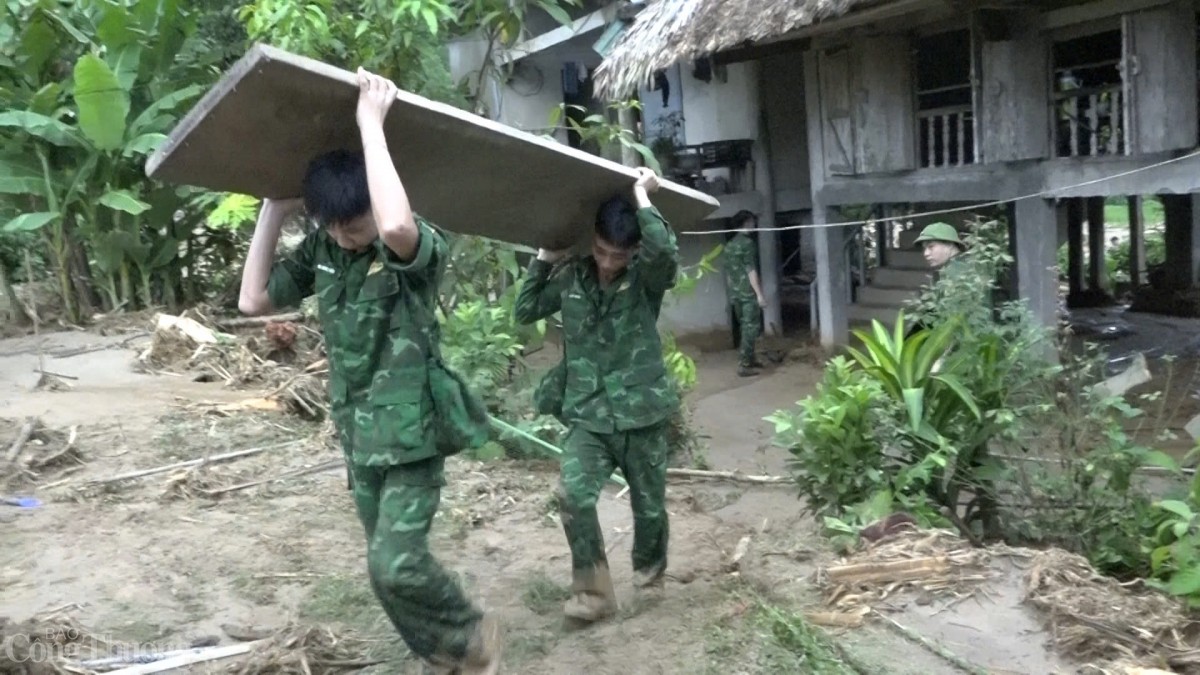 | Lực lượng biên phòng tỉnh Hà Giang hỗ trợ dân khắc phục hậu quả. Ảnh: BĐBP Hà Giang |