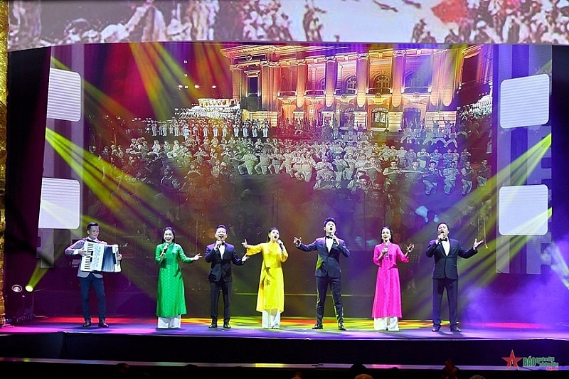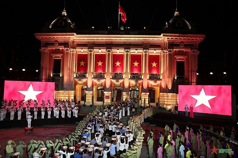 Điểm nhấn của chương trình là màn tái hiện không khí "Tiến quân ca" tại Quảng trường 19/8 (trước Nhà hát Lớn Hà Nội).