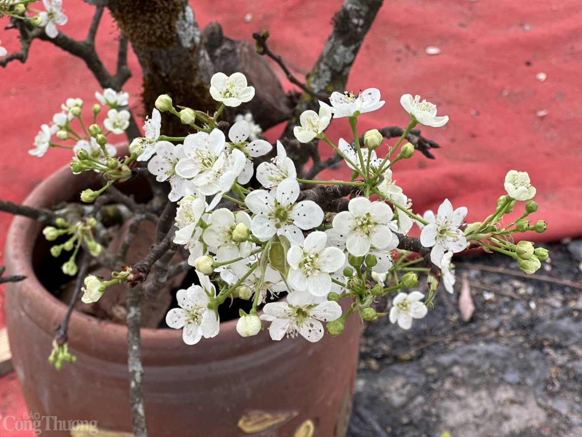 Những cành hoa lê nở bung, sắc trắng tạo nên vẻ đẹp hiếm có của núi rừng Tây Bắc. Mọi năm, hoa lê sẽ được bày bán cùng hoa mận rừng và mắc cọp rừng. Tuy nhiên, năm nay, do thời tiết nóng và Tết Nguyên đán muộn hơn nên hoa mận và mắc cọp đã nở hết. Đến thời điểm này, không còn hoa mận và mắc cọp rừng để chơi xuân sau Tết. |