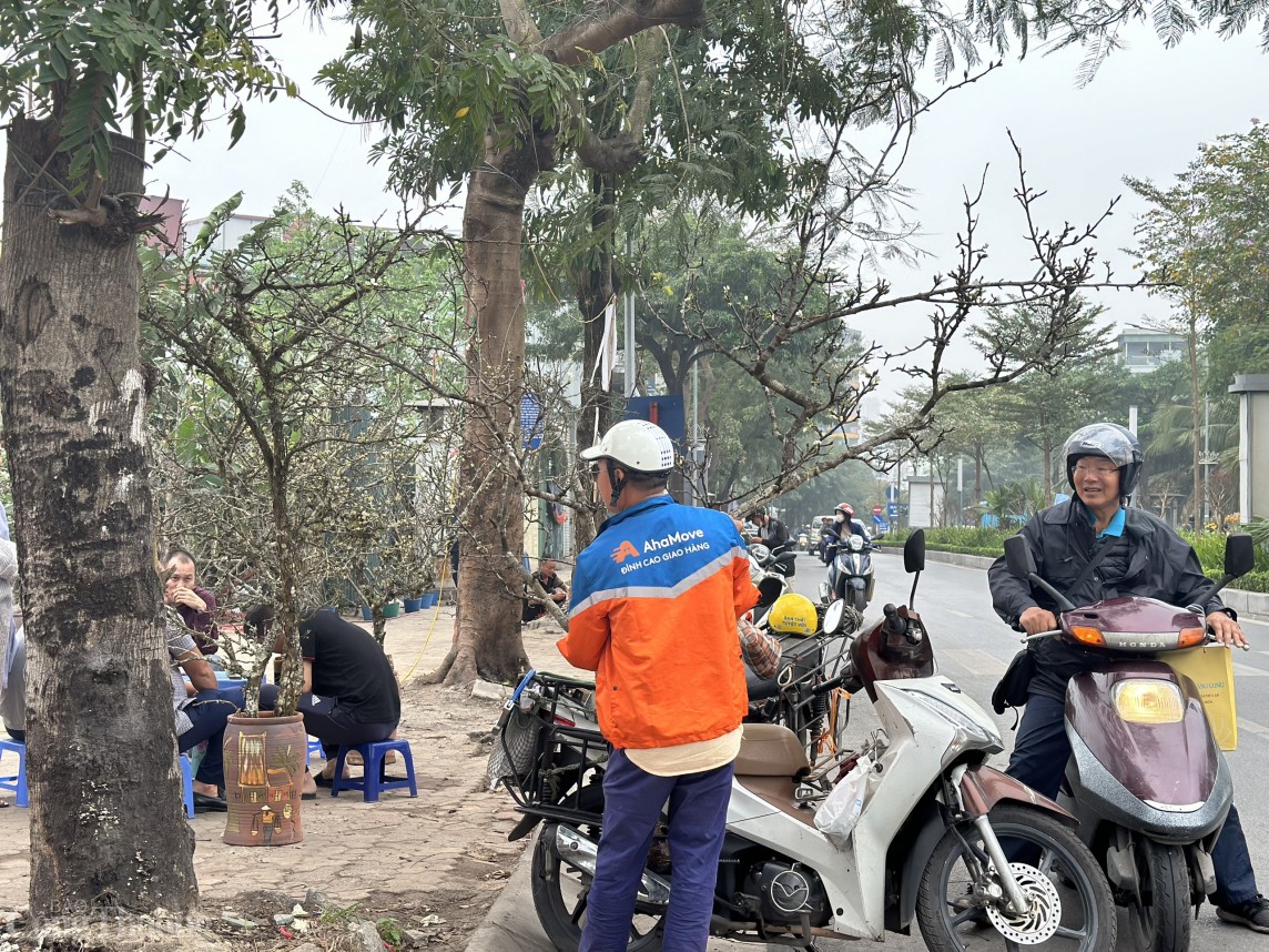 Vừa hết Tết Nguyên đán, dọc tuyến phố Lạc Long Quân (Tây Hồ, Hà Nội), nhiều người dân tìm đến đây để mua hoa lê rừng chơi xuân.