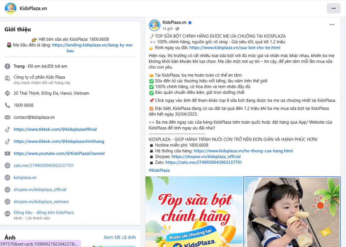 Kids Plaza đăng tải bài viết: “Hiện nay, thị trường có rất nhiều loại sữa bột với đủ mức giá và nhãn mác khác nhau, khiến ba mẹ không khỏi băn khoăn khi lựa chọn. Mẹ cần một nơi uy tín – tin cậy, để yên tâm mỗi lần mua sữa cho con yêu. Tại Kids Plaza, ba mẹ hoàn toàn có thể an tâm sữa đến từ các thương hiệu nổi tiếng, lâu năm trên thế giới, 100% chính hãng, có hóa đơn và tem nhãn đầy đủ, bảo quản chuẩn điều kiện, giữ trọn dưỡng chất”.