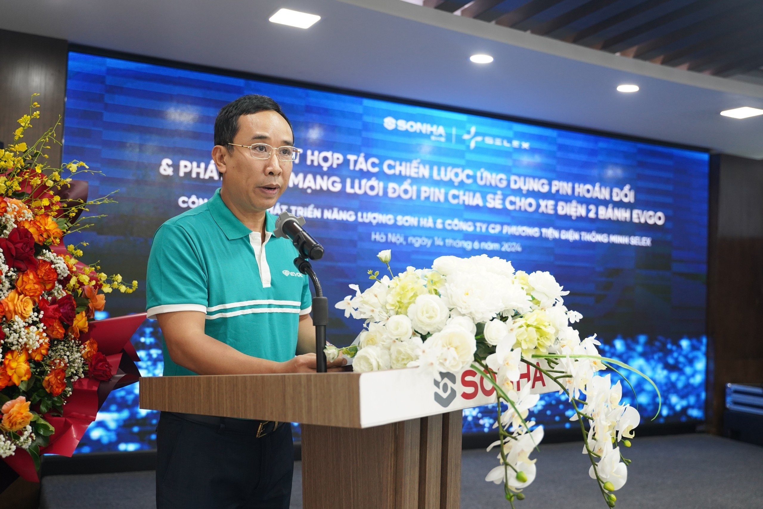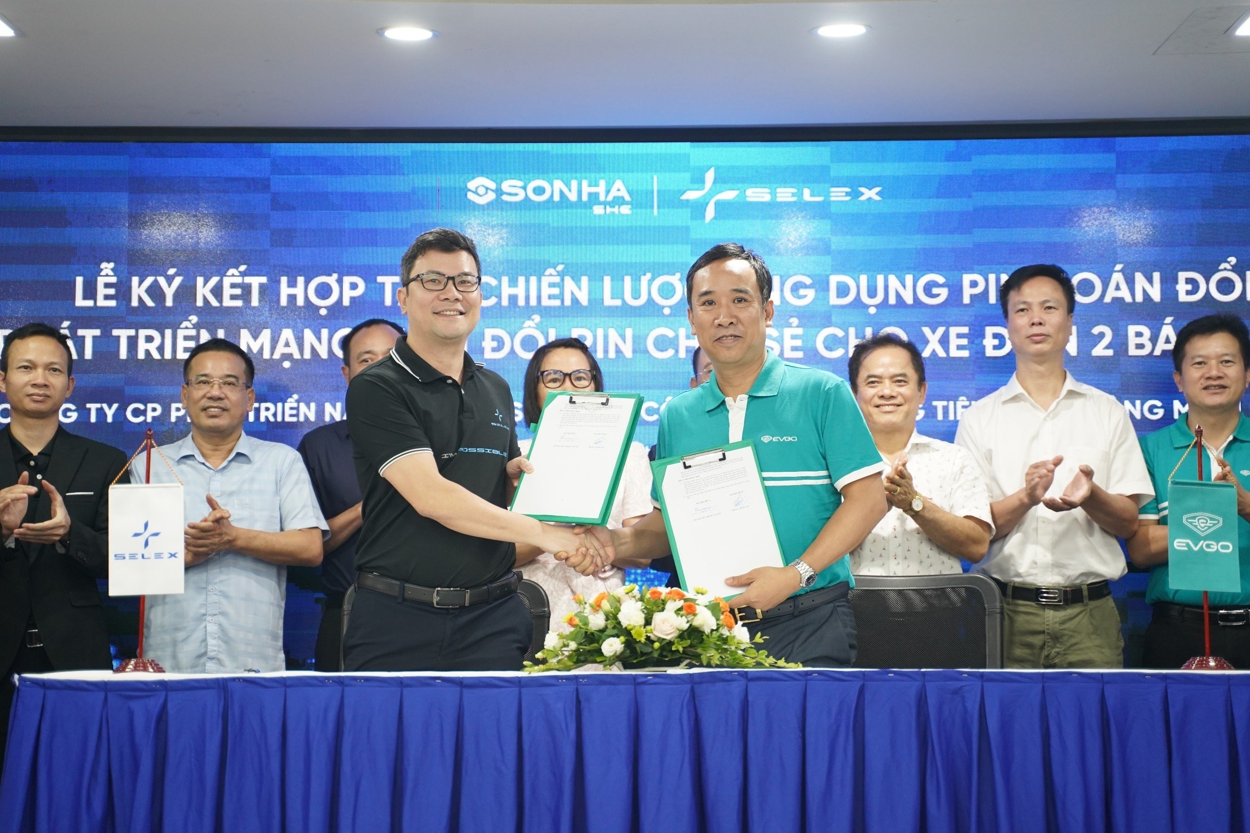 Những thông tin trên được đưa ra tại lễ ký kết “Ứng dụng pin hoán đổi và phát triển mạng lưới đổi pin chia sẻ cho xe điện hai bánh EVGO” của Công ty Cổ phần Phát triển năng lượng Sơn Hà (Sơn Hà SHE) - Đơn vị thành viên thuộc Tập đoàn Sơn Hà và Công ty Cổ phần phương tiện điện thông minh SELEX (SELEX MOTORS) tổ chức ngày 14/6.