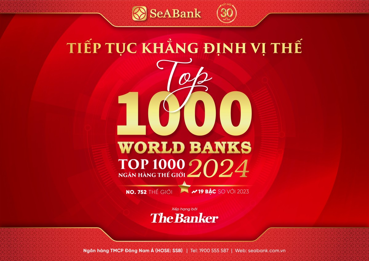 SeABank là một trong số ít ngân hàng Việt Nam góp mặt 3 năm liên tiếp trong bảng xếp hạng danh giá này với thứ hạng 752, tăng 19 bậc so với năm 2023 và tăng 169 bậc so với năm 2022. Việc SeABank liên tục góp mặt trong bảng xếp hạng danh giá cho thấy sự phát triển ngày càng toàn diện, hoạt động an toàn, lành mạnh, đồng thời thể hiện khả năng chống chịu rủi ro tốt trước tác nhân bên ngoài và cải thiện nguồn thu theo hướng bền vững hơn so với các ngân hàng trong khu vực. Trước đó, SeABank cũng được Tạp chí The Banker vinh danh tại hạng mục giải thưởng “Ngân hàng của năm - Bank of the Year” vào các năm 2013, 2021 và 2022.