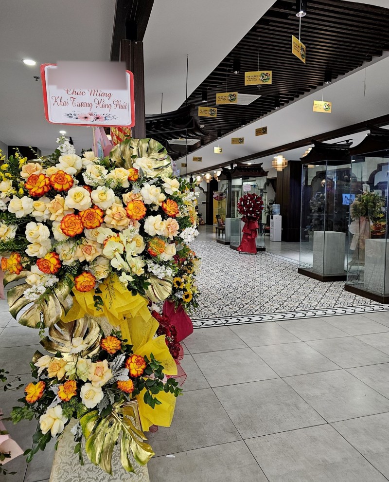 | Hoa tươi tràn ngập hành lang khu vực Tập đoàn Sen Tài Thu tổ chức khai trương |