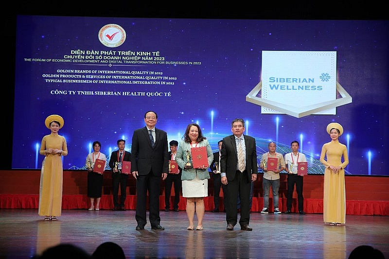 | Đại diện Siberian Wellness vinh dự nhận giải Thương hiệu Vàng Chất lượng quốc tế 2023 |