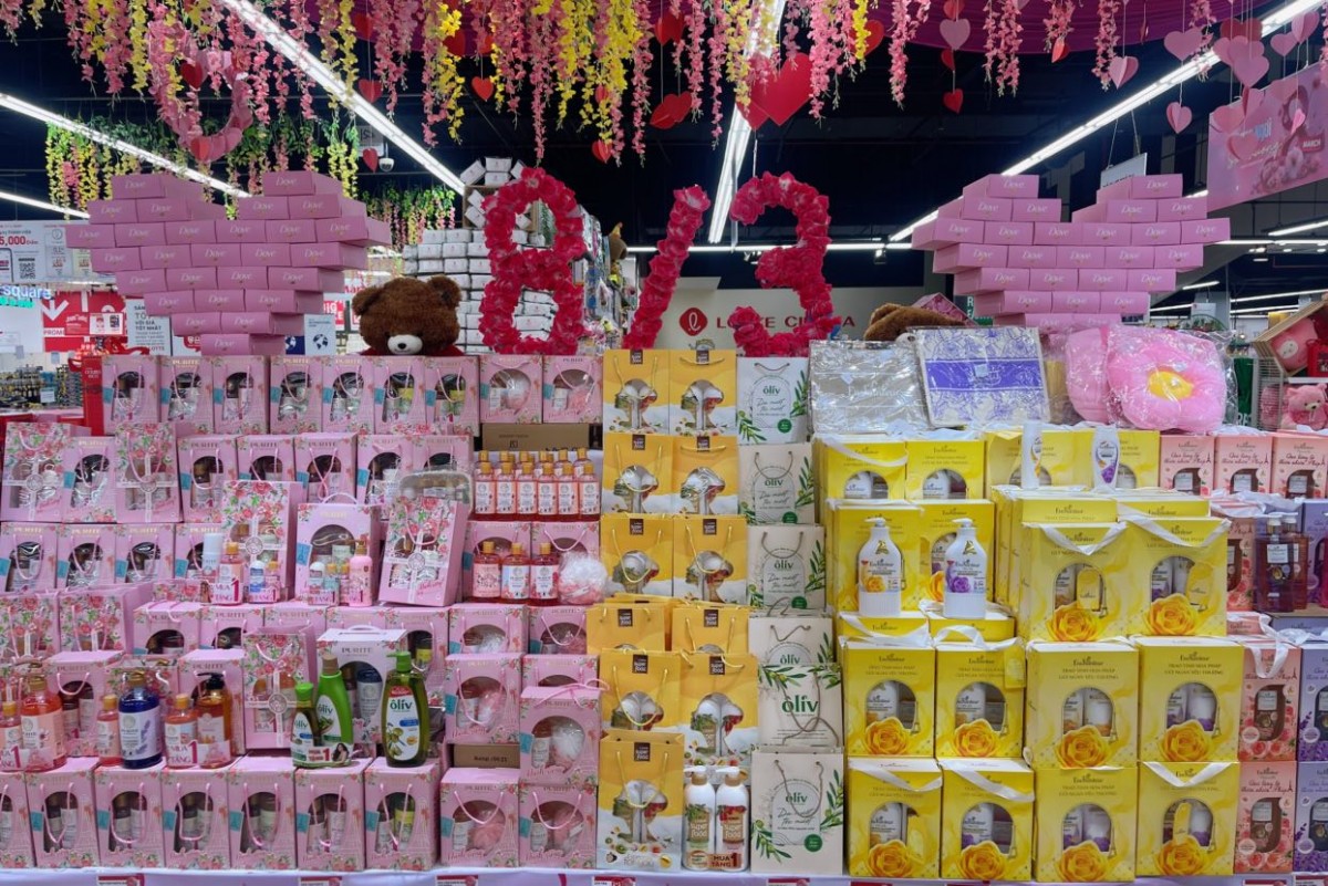Trong khi đó, hệ thống siêu thị Co.op Mart đang triển khai chương trình giảm giá lên đến 50% cho hơn 1.000 sản phẩm làm đẹp và quà tặng bày bán tại các gian hàng. Được săn đón nhiều nhất, phải kể đến các thương hiệu mỹ phẩm nổi tiếng như Double Rich, Oliv, Purite, Olay, Rejoice, Dove, Lux và Hazeline. Co.opMart còn phối hợp với các nhà cung cấp để thiết kế những hộp quà tặng xinh xắn, rực rỡ sắc màu, mang phiên bản giới hạn dành riêng cho ngày 8/3. Các hộp quà này có mức giá dao động từ 72.000 đến 399.000 đồng, tùy thuộc vào từng loại sản phẩm.