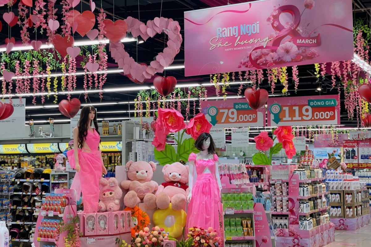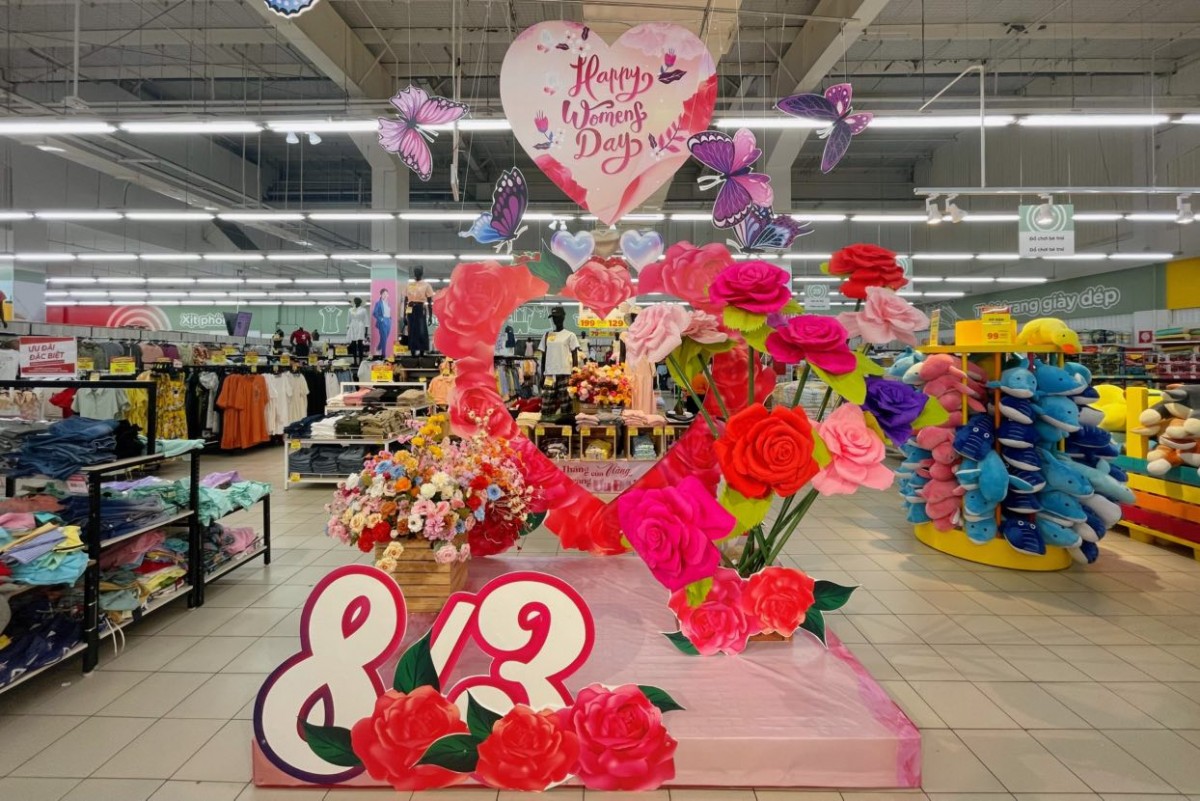 | Nhiều không gian nổi bật được trưng dụng để trang trí cho dịp 8/3 tại siêu thị Go! (Ảnh: Minh Anh) |