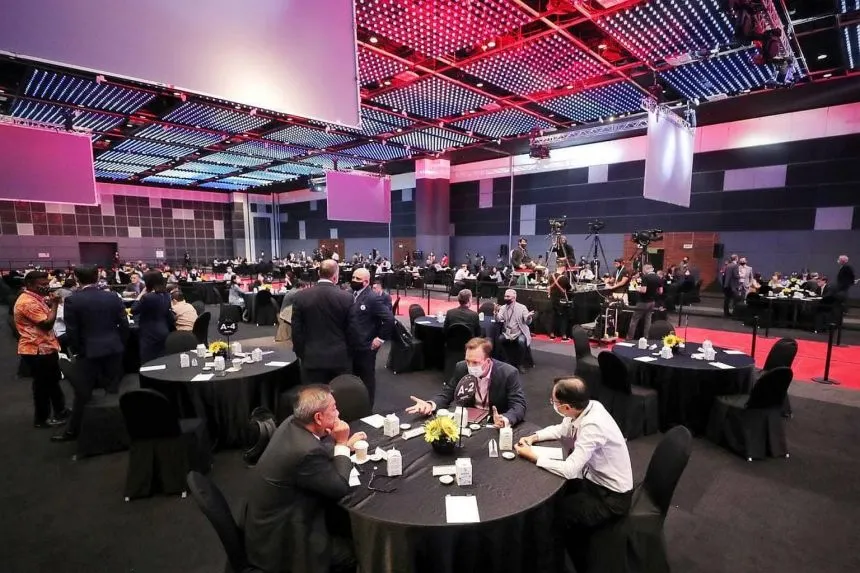 Khách tham dự tại Hội nghị thường niên ngành du lịch của STB vào ngày 7/4/2021. Nguồn hình: The Straits Times. |