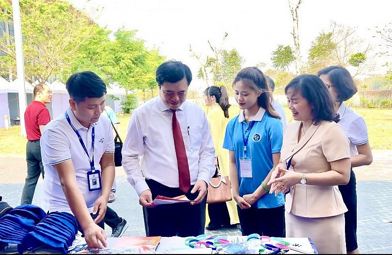 | Thứ trưởng Bộ Công Thương Nguyễn Sinh Nhật Tân đến thăm gian trưng bày của Trường Đại học Kinh tế kỹ thuật công nghiệp |