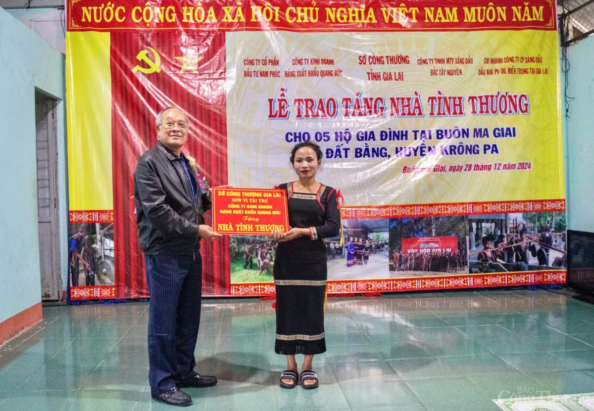 Chiều 28/12, Sở Công Thương tỉnh Gia Lai phối hợp với UBND huyện Krông Pa cùng các đơn vị tài trợ tổ chức lễ trao tặng nhà tình thương cho các hộ gia đình có hoàn cảnh đặc biệt khó khăn tại thôn Buôn Ma Giai (xã Đất Bằng, huyện Krông Pa).
