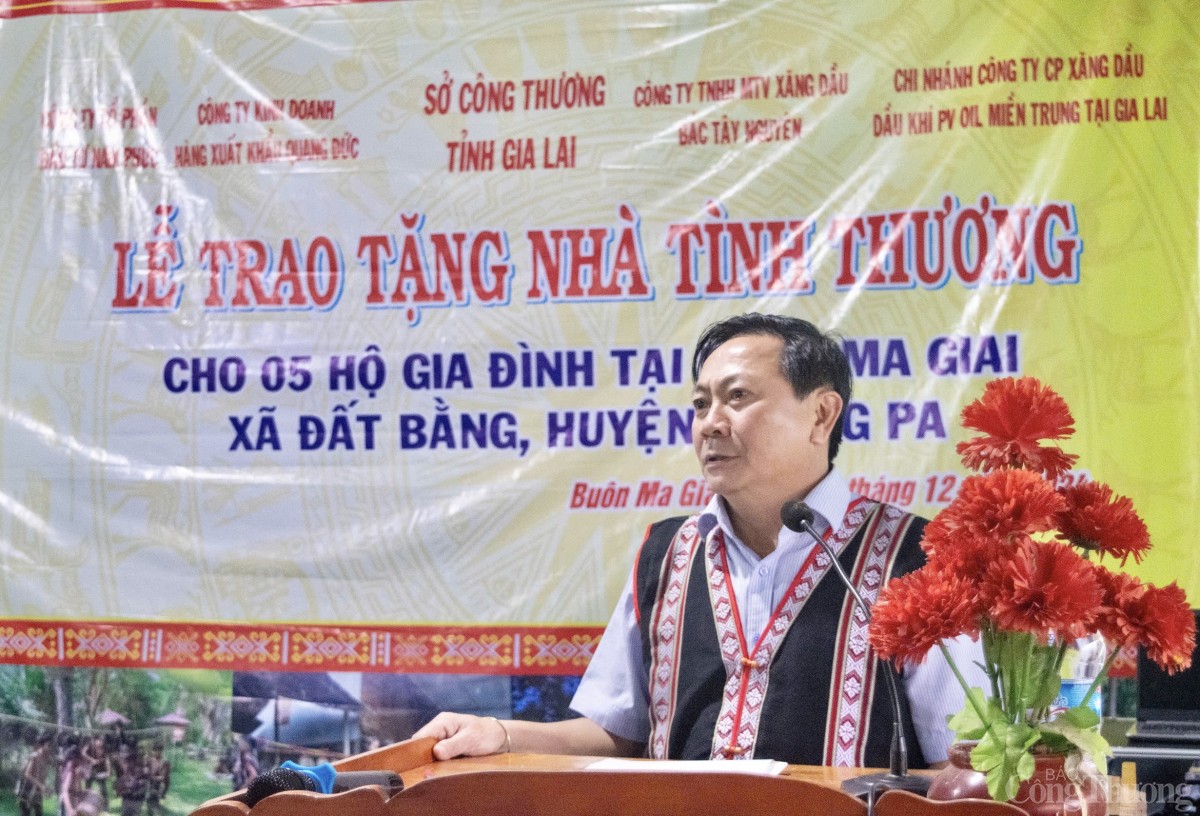 Tại buổi lễ trao tặng nhà, ông Hồ Văn Thảo - Chủ tịch UBND huyện Krông Pa cảm ơn sự quan tâm giúp đỡ của lãnh đạo Sở Công Thương cùng các đơn vị tài trợ đối với địa phương.