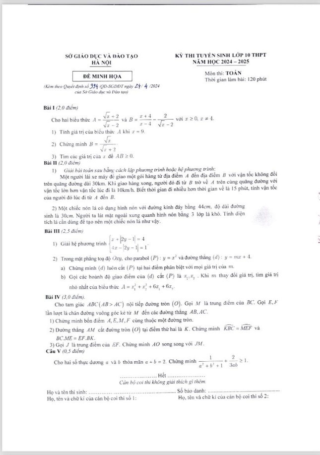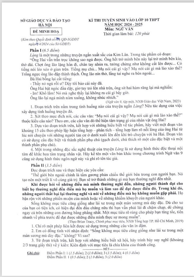 Ngoài cấu trúc, định dạng đề thi, Sở Giáo dục và Đào tạo Hà Nội cũng đã công bố đề minh họa các môn để học sinh, các nhà trường bám sát và ôn tập.