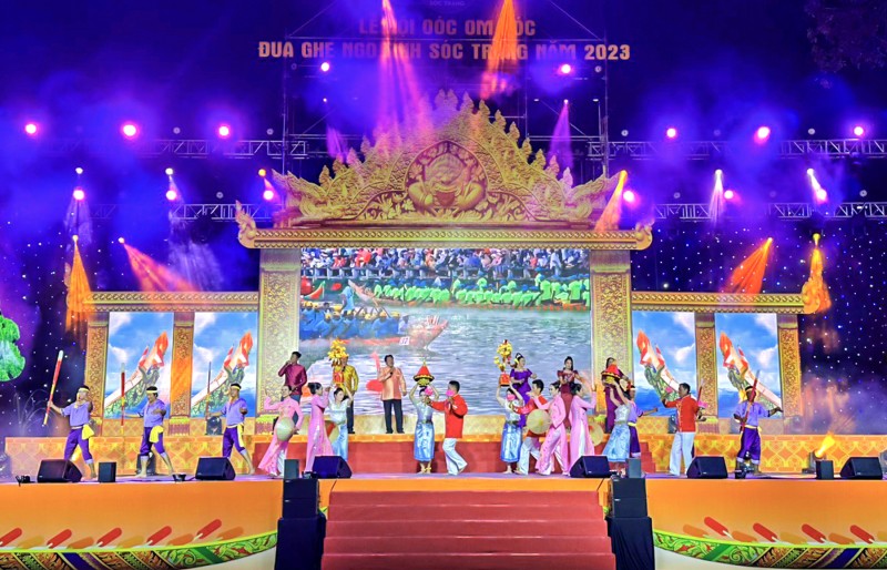 | Hoạt cảnh văn nghệ chào mừng khai mạc Lễ hội Oóc Om Bóc – Đua ghe Ngo tỉnh Sóc Trăng năm 2023 |