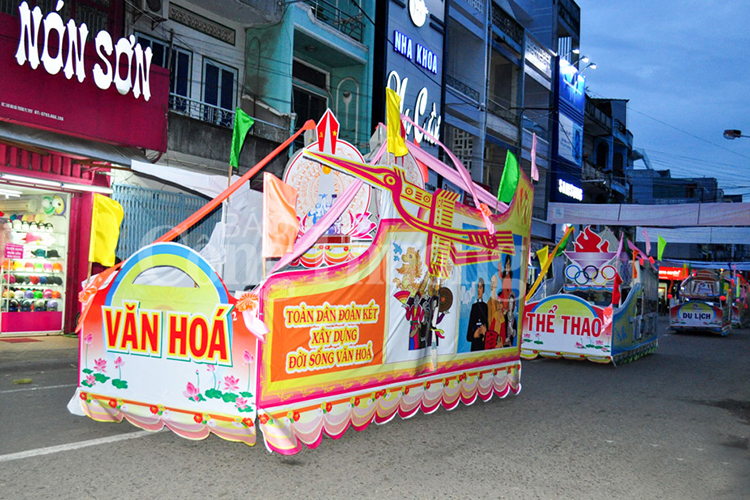Trên đường diễu hành, đoàn đã dừng lại tại Tượng đài trung tâm (Tượng đài 3 dân tộc), Công viên 30-4 để biểu diễn các tiết mục nghệ thuật đặc sắc: múa trống Chchaydăm, múa Madison, nghệ thuật Dù Kê - Rô Băm, múa người Nộm, hát bội, lầu cấu... với hàng trăm diễn viên tham gia biểu diễn. Lễ hội đường phố đã thu hút đông đảo người dân đến xem và rất thích thú trước những tiết mục đặc sắc.