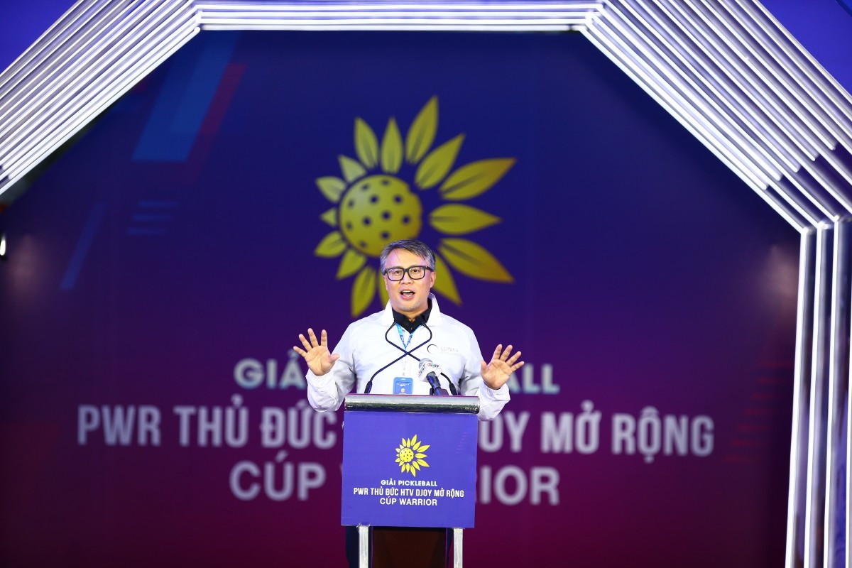 Phát biểu chúc mừng, ông Nguyễn Nam Nhân - Phó Giám đốc Sở Văn hóa và Thể thao TP.HCM chia sẻ, TP.HCM rất vinh dự chào đón các vận động viên đến từ 19 quốc gia trên thế giới cùng các tỉnh thành trong cả nước tham gia. Ông hy vọng, giải pickleball PWR Thủ Đức HTV DJOY mở rộng - Cúp WARRIOR sẽ là sân chơi thể thao xứng tầm, phù hợp với vị thế một thành phố lớn của vùng kinh tế trọng điểm phía Nam và cả nước. Đồng thời, ông kỳ vọng giải đấu sẽ đáp ứng được nhu cầu rèn luyện sức khỏe và niềm đam mê thể thao của đông đảo người dân, đặc biệt là những người yêu thích bộ môn pickleball.