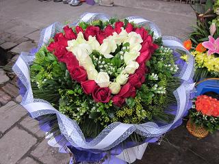Cũng như mọi năm, loại bó hoa chỉ gồm 1 bông hồng to (do ghép từng cánh) được người tiêu dùng rất ưa chuộng. Giá một bó hồng “bát” như vậy vào khoảng 150.000- 200.000 đồng/bó. Thêm vào đó, mặt hàng “bó hoa xếp thành hình trái tim” cũng được nhiều khách hàng lựa chọn dù giá của nó không hề thấp, khoảng 300.000- 500.000 đồng/bó tùy cửa hàng và khách hàng. Theo khảo sát của phóng viên Công Thương điện tử, giá hoa tại các shop trên đường Kim Mã luôn ở mức cao nhất.