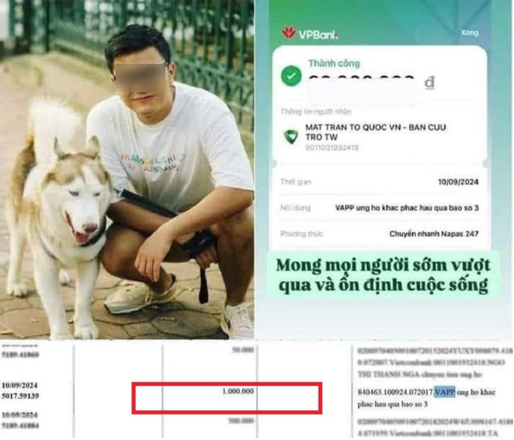 Theo chia sẻ, sáng ngày 10/9, team dự định sẽ chuyển khoản 20 triệu để giúp đỡ bà con vùng lũ. Lúc đó, một bạn khác trong team đang cần điện thoại của Việt Anh và anh chàng nhờ bạn đó chuyển khoản.