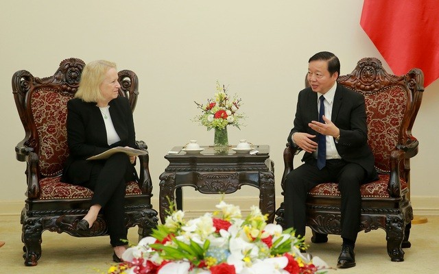 Phó Thủ tướng Trần Hồng Hà trao đổi với bà Mary L.Schapiro về những yêu cầu hỗ trợ của Việt Nam trong lĩnh vực năng lượng tái tạo - Ảnh: VGP/Minh Khôi