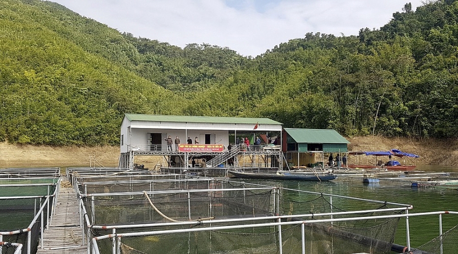 | Nhiều năm nay, trên lòng hồ thuỷ điện Hủa Na nhiều hộ dân đã nuôi cá làm giàu |