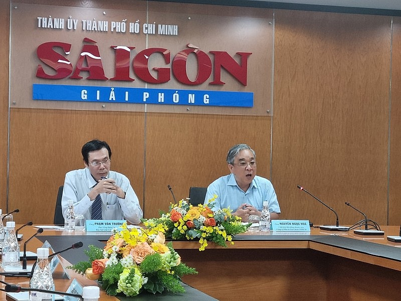| Ông Nguyễn Ngọc Hòa - Chủ tịch Hội đồng thành viên Công ty Đầu tư Tài chính Nhà nước TP. Hồ Chí Minh (HFIC) (bên phải) chia sẻ tại tọa đàm. |