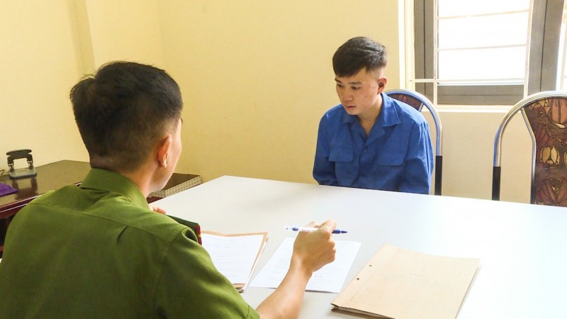 | Đối tượng Sa Việt Hoàng tại cơ quan Công an |